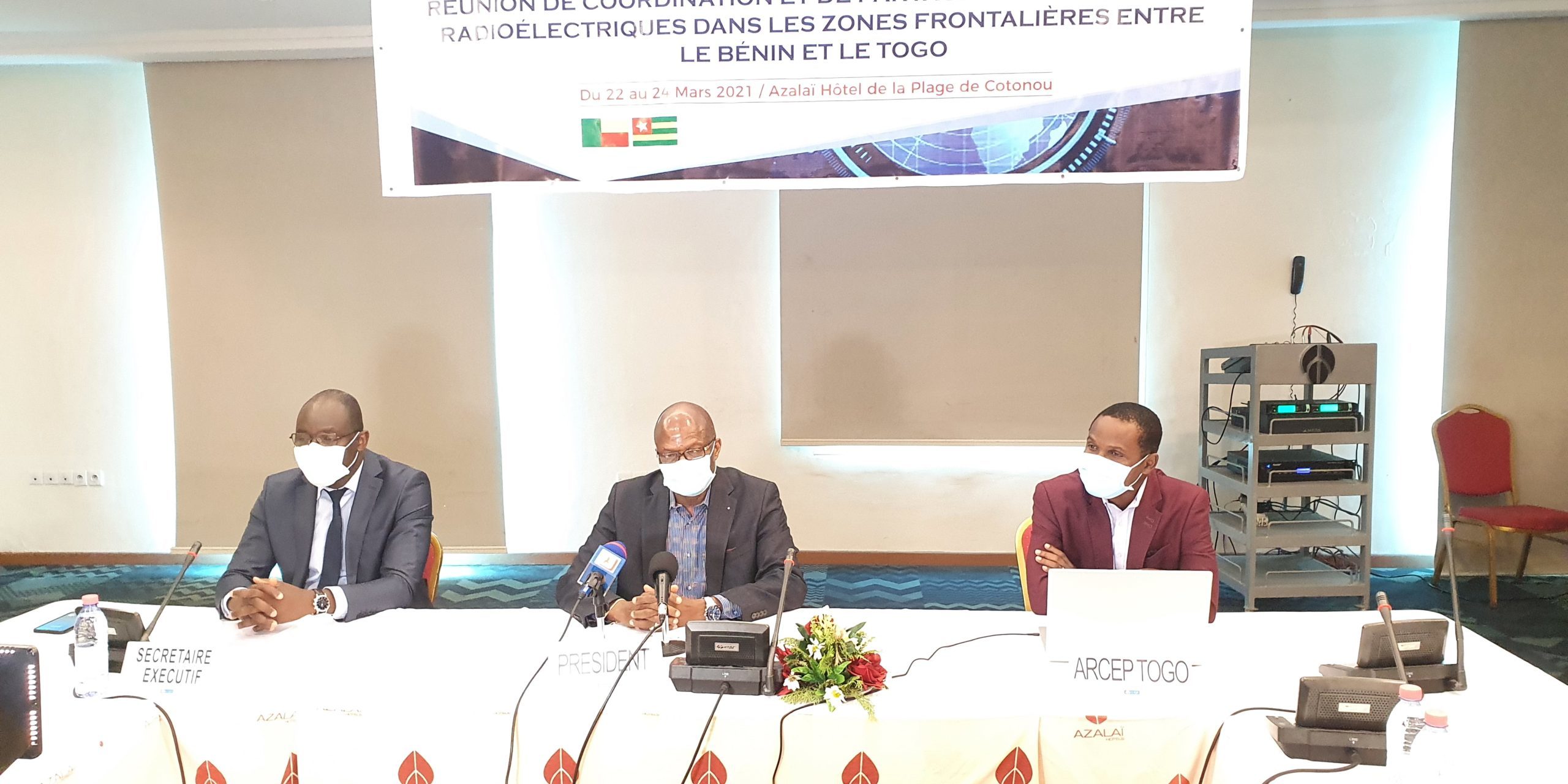 Démarrée depuis le lundi 22 mars 2021 à Azalaï Hôtel de la plage de Cotonou, la réunion de coordination et de partage des fréquences radioélectriques au niveau des frontières du Bénin et du Togo, a connu son épilogue ce mercredi 24 mars 2021 sous la présence effective du Président de l’Autorité de Régulation des Communications Electroniques et de la Poste du Bénin, Monsieur Flavien BACHABI et du Secrétaire Exécutif Monsieur Hervé Coovi GUEDEGBE.
